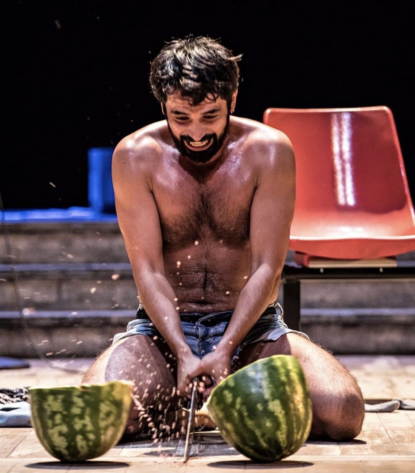 Acteur rencontré au JTN Paris 4. Collard. Puig. Short coupé. Pastèque et « Jean-luc ? ». Sourire en sueur.
